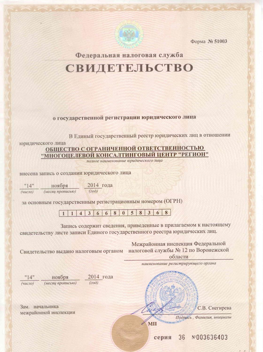(сокращенное название ООО «МКЦ «РЕГИОН») осуществляет свою деятельность с 2014 года (ОГРН 1143668058368).